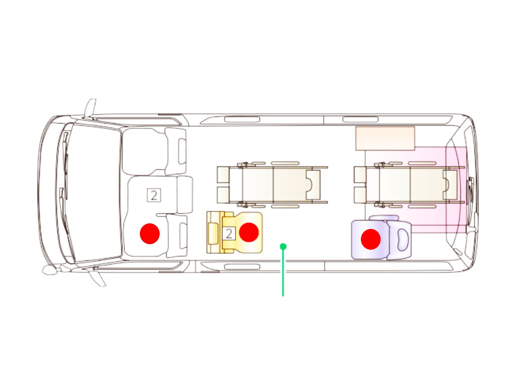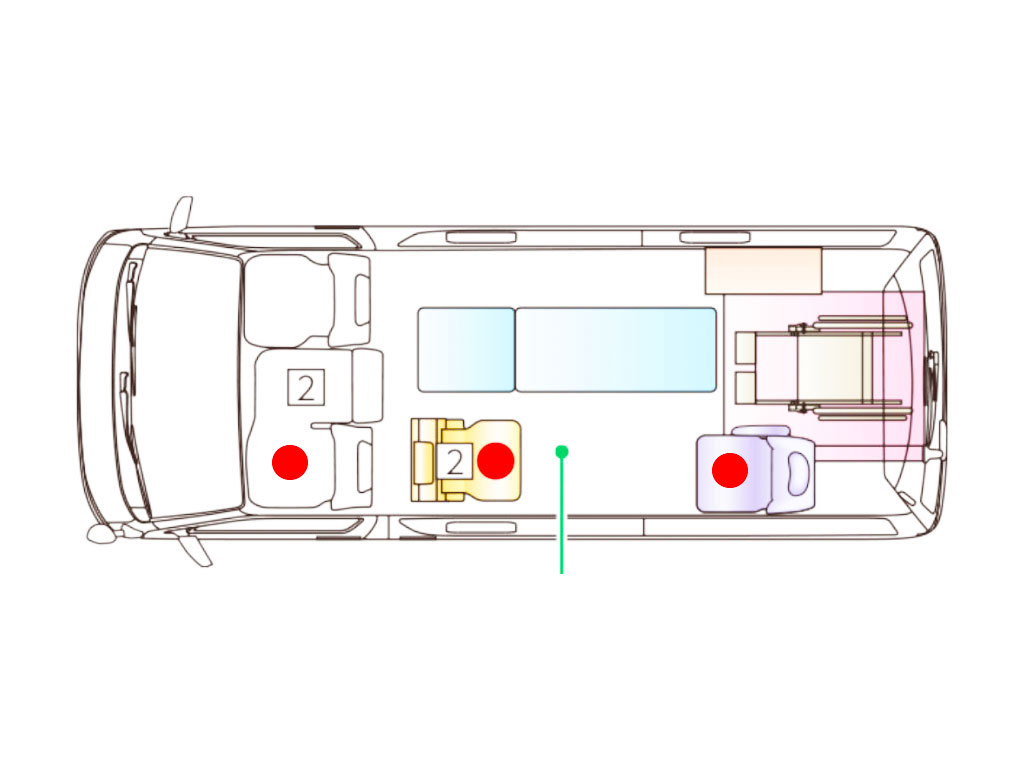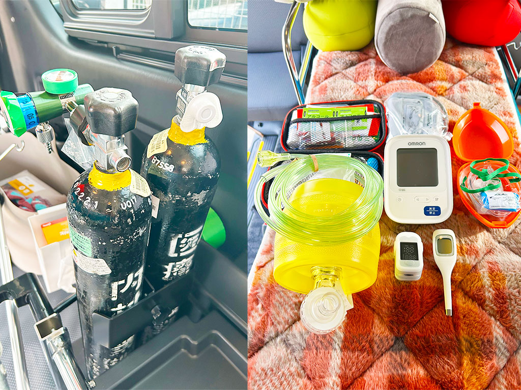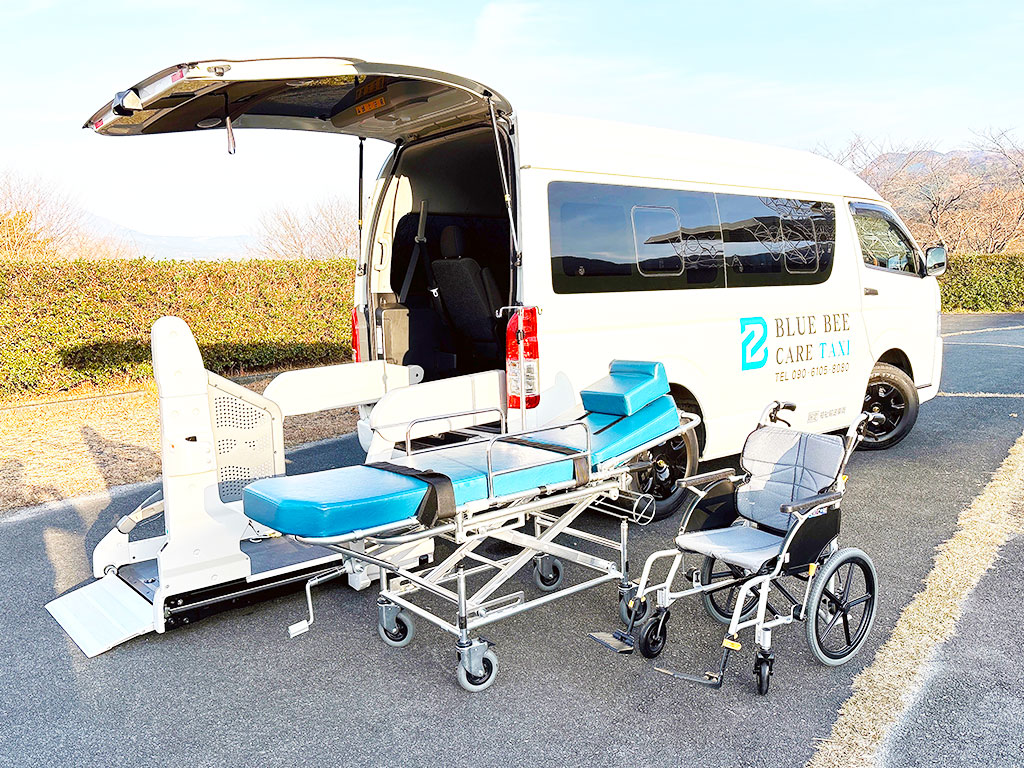 ブルービーケアタクシーは、お客様の状態にあわせ柔軟に対応可能な車両と各種医療設備を積載しております。